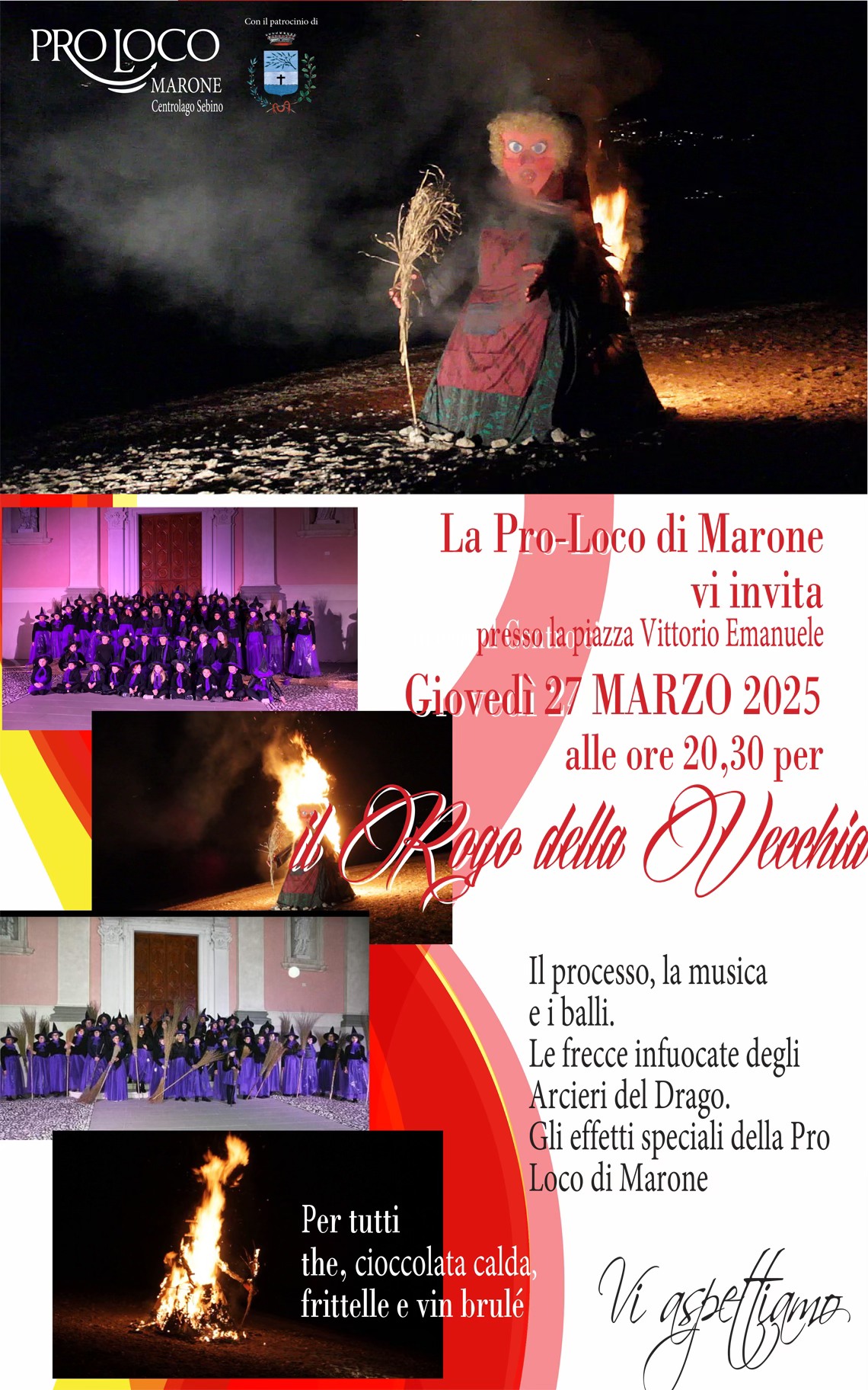 Giovedì 27 marzo 2025 alle ore 20.30 in Piazza Vittorio Emanuele, presso il Centro Civico Don R. Benedetti, a Marone si terrà “Il Rogo della Vecchia”.