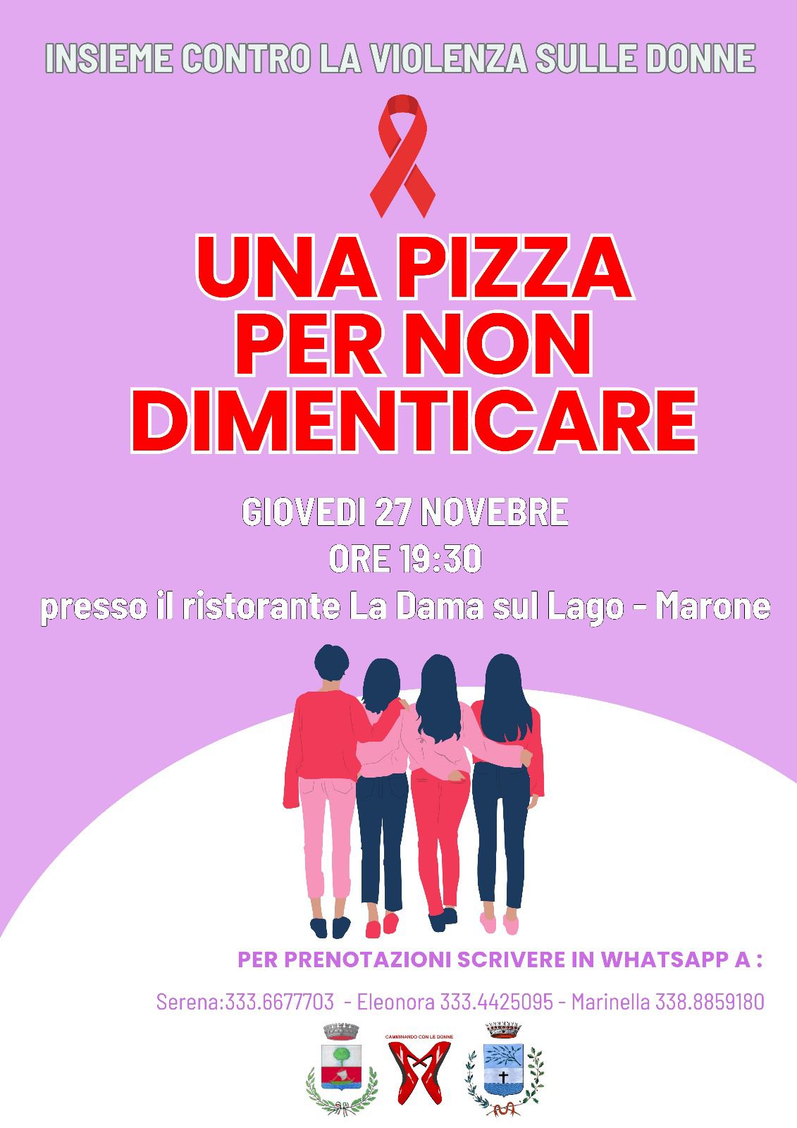 - Giovedì 27 novembre - Camminando con le donne incontra i ragazzi del Cfp Clusane e, alle 19.30, Pizza per non dimenticare alla Pizzeria "La dama sul lago" a Marone