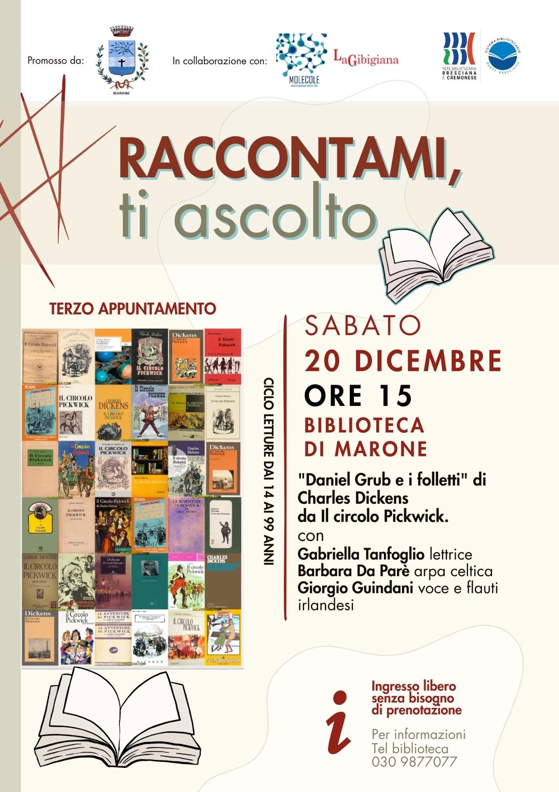 "Daniel Grub e i folletti" di Charles Dickens da Il circolo Pickwick con Gabriella Tanfoglio lettrice, Barbara Da Parè arpa celtica e Giorgio Guindani voce e flauti irlandesi